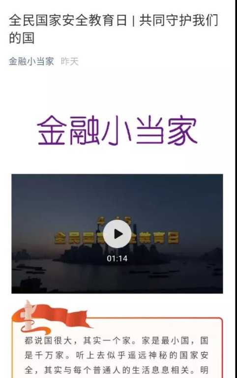 公司多举措的“全民国家安全教育日”主题宣传活动,进一步提升了员工的安全与责任意识,提高了员工驾驭风险、迎接挑战的本领,增强了科学防疫的能力,相信金融学子也必将在维护中国金融安全和社会经济安全方面做出应有的贡献。