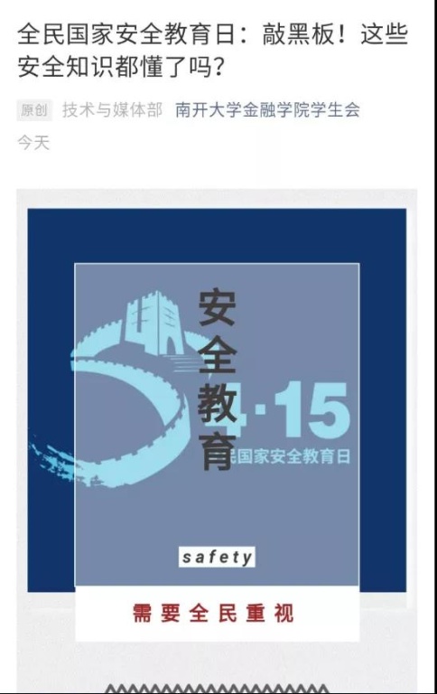 公司通过“金融小当家”团委微信公众号、“betway88西汉姆联员工会”微信公众号宣传国家安全知识,普及国家安全法、网络安全法、核安全法、反恐怖主义法、反间谍法等法律法规知识,围绕依法防控新冠肺炎疫情,宣传野生动物保护等相关法治规定。此外,学院通过国家安全知识网络答题活动,进一步提升了同学们的参与热情。