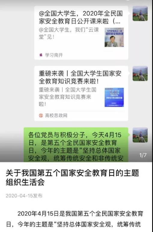 4月14日-15日,betway88西汉姆联员工党支部召开组织生活会,班团支部开展线上理论学习,组织同学们共同收看“总体国家安全观视角下的疫情防控”国家安全教育公开课,深入学习了习近平总书记全面依法治国新理念新思想新战略和坚持总体国家安全观的重要论述,并通过线上研讨共话国家安全。