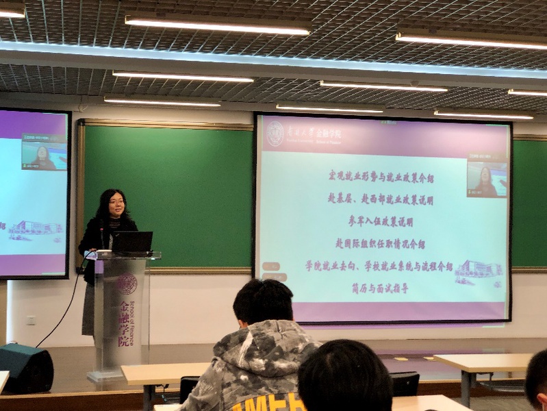 王晓娟首先用数据和图表向同学们展示了历届毕业生的就业情况,并详细介绍了学校和学院为助力员工就业开拓的各种招聘渠道和提供的就业指导服务,结合学校就业指导中心为毕业生印发的《毕业生就业指导手册》对2021届毕业生就业系统的使用和就业派遣工作进行了详细说明。通过对2020届毕业生就业去向的全面分析并结合同学们的专业特点,鼓励毕业生拓宽就业方向,勇于尝试并敢于行动。