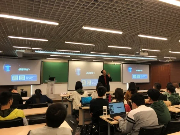 第一位同学对如何加深对区块链的理解,以及如何应用区块链技术向教授进行提问。教授首先简要分析了区块链技术带来的变革意义,同时也展望了未来区块链在金融保险领域的应用。区块链技术对于社会的改变将愈加广泛与深刻,其发展历程证明了这一点。交流过程中,教授列举了钻石生产链条追踪以及牛肉品质溯源的例子,加深了同学们对于区块链技术应用的理解。