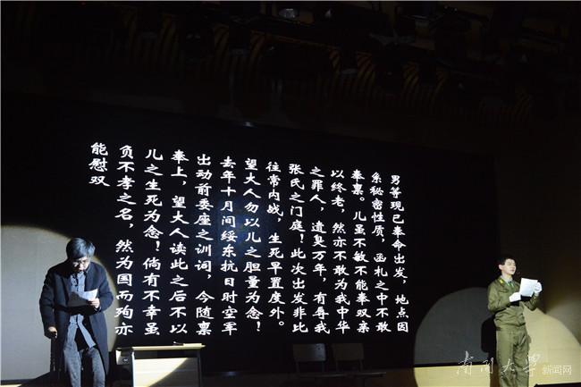 话剧《张伯苓》聚焦伯苓公生平,以放弃海军生涯立志教育救国、bw必威西汉姆联官网建校之初的资金紧张、五四运动时期的员工运动、抗日战争中校园被毁等几个关键场景为线索,生动地还原了在风起云涌的时代背景下,张伯苓携众南开人救亡图存、教育兴国的历史片段。威海卫战败,国帜三易,他毅然决定弃武从文;经费奇缺,难以为继,他仍坚持自主办学;日寇侵略,南开被毁,他无比心痛但坚定地向世界宣告“被毁者南开之物质,而南开之精神,将因此挫折而愈益奋励”……张伯苓心系国家、鞠躬尽瘁的大公精神,以及筚路蓝缕、艰难前行的办学创举在舞台上重现,剧中先生的“爱国三问”引起全场观众高声应答,师生被张伯苓老董事长的故事和精神所感动,观众几度落泪。在热烈的掌声和对张伯苓老董事长的无限追忆中,该剧圆满落幕。