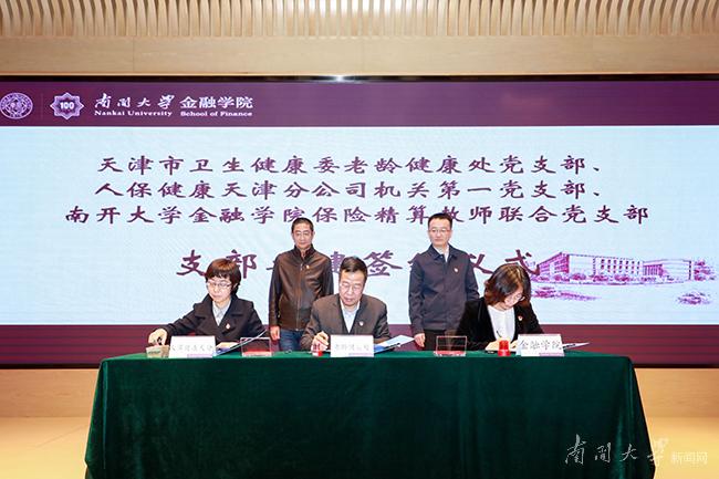 签约仪式上,天津市卫生健康委老龄健康处党支部书记李金铸、人保健康天津分公司机关第一党支部书记王国秋、betway88西汉姆联保险精算教师联合党支部书记陈璐共同签署以党建促发展共建协议。三方将以支部共建的方式全面落实新时代党的建设总要求,更好地发挥党支部战斗堡垒作用,加强基层党组织在老龄、健康、民生保障领域的联动建设,搭建产学研教平台,发挥党建引领的作用,聚智聚力、资源共享,协同推动“健康中国”“积极应对人口老龄化”等新时代国家战略在基层落地实施。