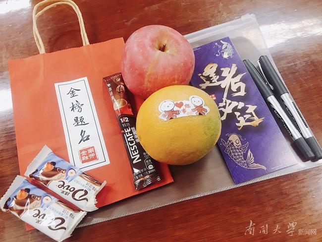 betway88西汉姆联为121位考研员工准备了精心定制的祝福礼袋,由毕业班辅导员到宿舍、到自习室将祝福送到每位员工手中。红色福袋上的“金榜题名”“厉兵秣马”“天道酬勤”“百尺竿头”祝福语,福袋中“逢考必过”书签、文具与小零食、贴有学院吉祥物“小金”“小融”的橙子与苹果……无不寓意着满满的祝福与能量。