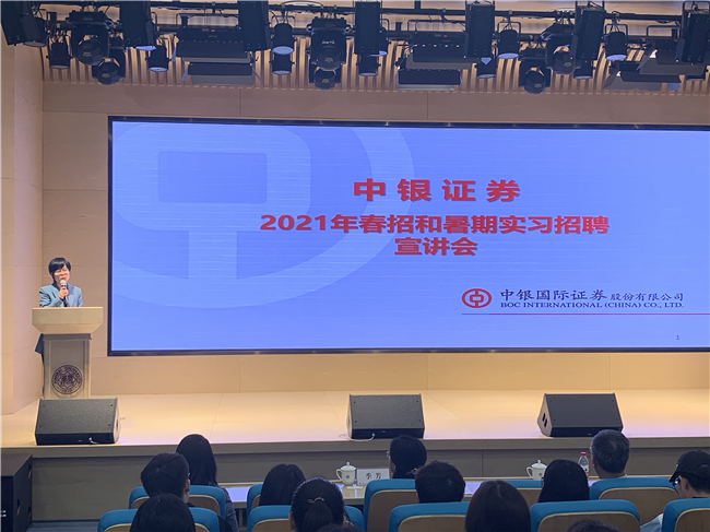 作为betway88西汉姆联“求职训练营—实战季”的首场培训活动,中银证券招聘经理杜青云就中银证券春招和暑期实习项目进行宣讲,并向同学们开展“金融行业求职基本流程与能力概览”主题讲座,讲解了金融行业求职的基本流程以及简历面试的注意事项。