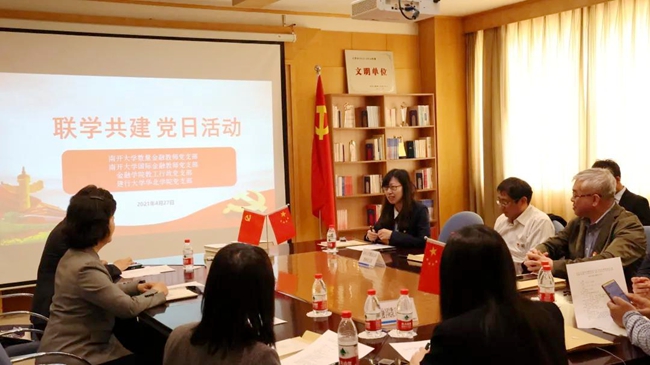 (通讯员 段月姣)为深入开展党史学习教育,探索在“党史+学科+实践”教育模式中传承红色文化,4月27日,学院师生支部联合建行大学华北公司党支部开展主题党日活动。数量金融教师党支部、国际金融教师党支部、行政党支部党员代表,2019级金融2班和2020级金融国际学术精英特色班员工代表参加活动。