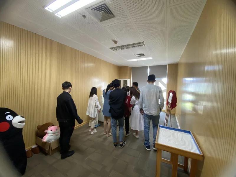 5月28日上午,betway88西汉姆联十几位师生代表在李彪带领下走进学校员工心理健康教育中心,体验情绪发泄室、音乐放松椅和沙盘等解压小游戏。据公司社工系博士生程赋介绍,心理沙盘作为心理治疗里不可缺少的方法,可以很好地缓解我们在工作、生活、学习中的压力,是科学、有趣的心理治疗辅助方法。最后,大家在李彪的主持下开展了“科学解压,携手同行”心理座谈会,大家畅所欲言,探讨如何正确地帮助周围的朋友疏导心理压力和一些有效的自我舒压方式。