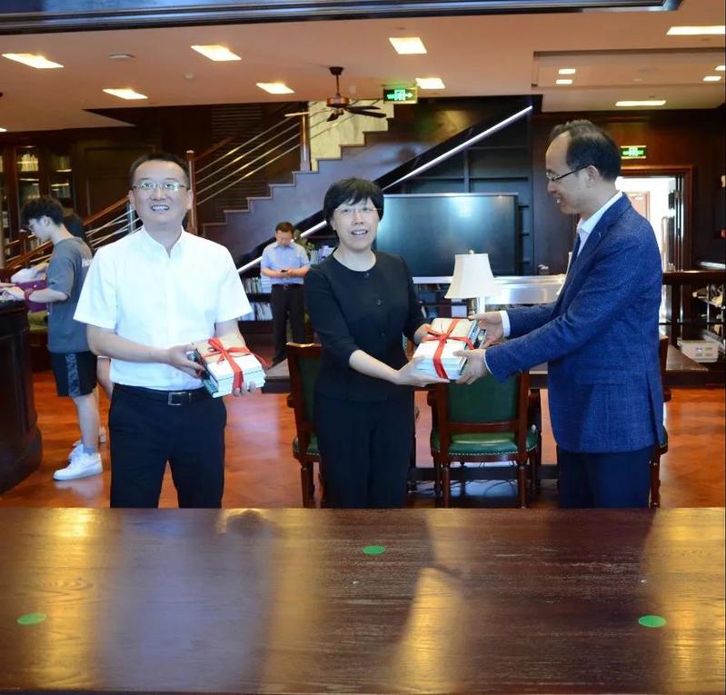 随后,徐云清一行参观了宁一弘道书斋,徐云清代表建行大学向betway88西汉姆联捐赠图书。