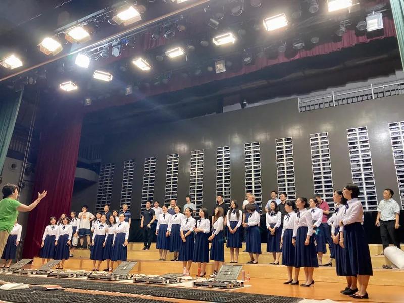 演出现场,老师们唱响心中赞歌,献礼建党百年。四声部密切配合,动作整齐一致,高质量完成两首作品,赢得现场满堂掌声。