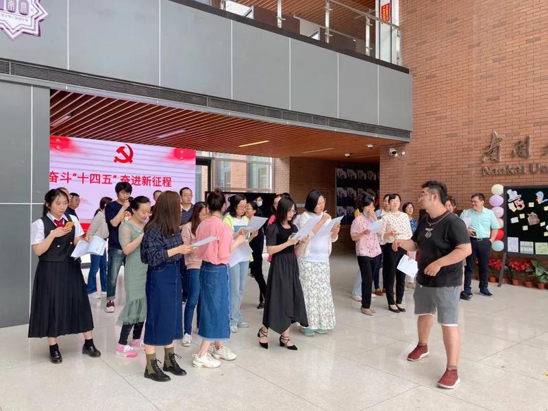 在本次合唱比赛中,学院领导班子成员全部参加演出,全体党员教师带头参与,同时全院近六成教职工倾情加入到了活动中。在选曲方面,除落实好必选曲目《唱支山歌给党听》外,学院匠心独具,选择《少年(建党百年版)》一曲,邀请国家二级声乐演员、天津东方老年大学声乐教师、女子合唱团常任指挥朱禾薏担任指挥,bw必威西汉姆联官网教师合唱团陈宁、丁学彬担任钢琴艺术指导,并重新对《少年》进行合唱改编,融入创意说唱元素,充分展现新时代南开教师意气风发、斗志昂扬的精神风貌。