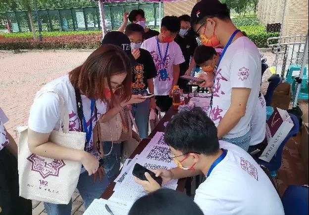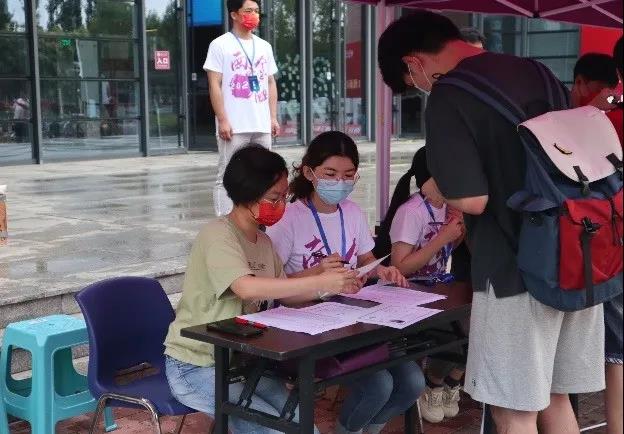 上午八点,迎新工作准时展开。防疫信息核验、毕业证核对、身份验证、档案收统、新生纪念品发放……研究生志愿者在各自岗位上认真落实报到流程中的每一个环节。