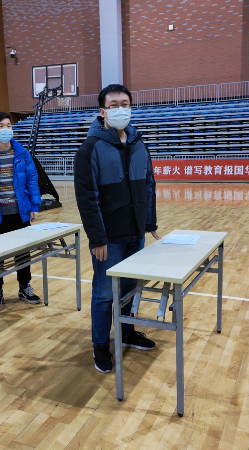 学院技术干部郑光明和博士后张祚超化身“校内网格员”,在全校核酸筛查现场负责信息登记工作。