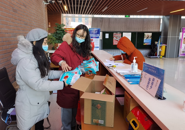 公司管理干部徐静平变身保障天使,在学院为留校师生发放口罩、酒精消毒液等物资,并帮助因疫情无法回校的老师整理办公室。