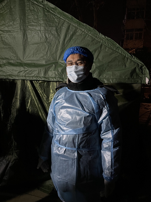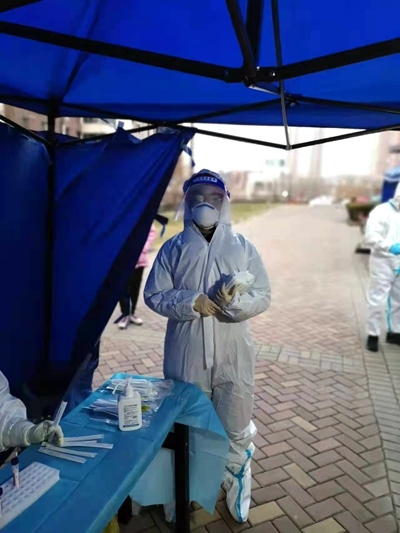 公司团委书记、辅导员袁芳在校园封闭管理后主动申请回到津南校区,陈璐教授、陈孝伟副教授主动参与社区志愿服务,他们变身蓝衣战士,支援核酸筛查工作。