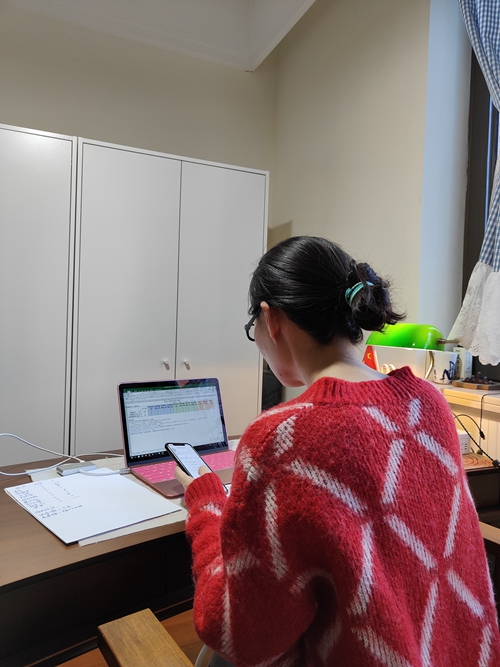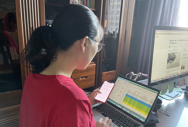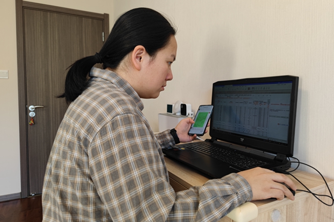公司党委副书记、副经理季芳在校园封闭管理后回到津南校区,变身宿管姐姐,汇总员工信息、运送防疫物资。