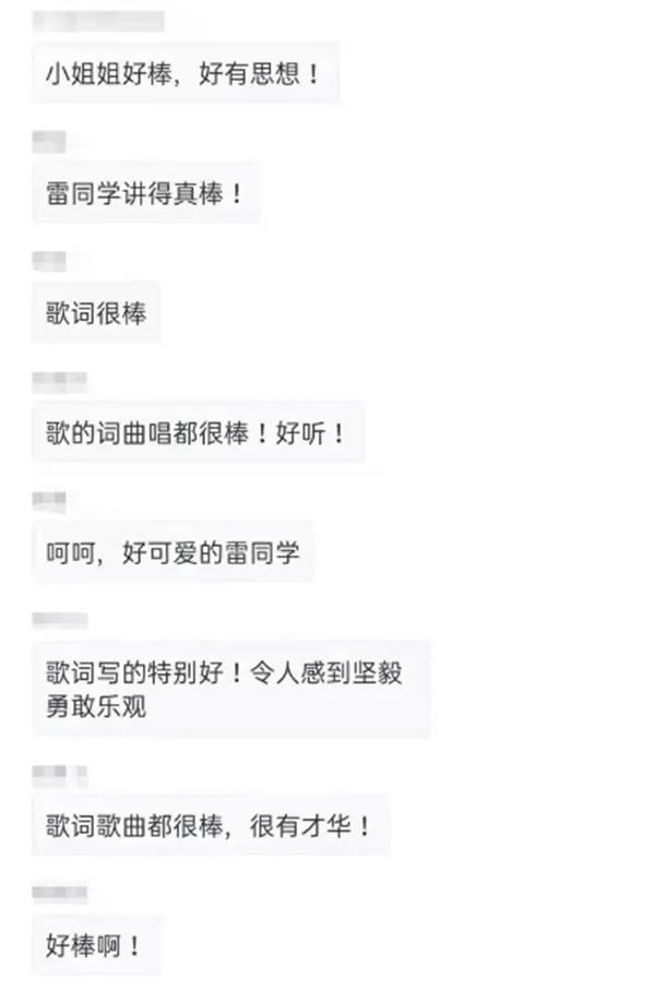 这首歌得到了很多南开师生和陌生歌友的支持。有一位同学在听了《津门战疫》后,专门联系雷依依表示感谢,认为这首歌给正在隔离中的自己带来了力量与情感慰藉,从而将这段日子的焦虑与难过一股脑儿地宣泄出来,自己再次充满了力量。这也让雷依依更为深刻的感受到歌曲的意义不只在于歌曲本身,也在于其蕴含的精神力量。