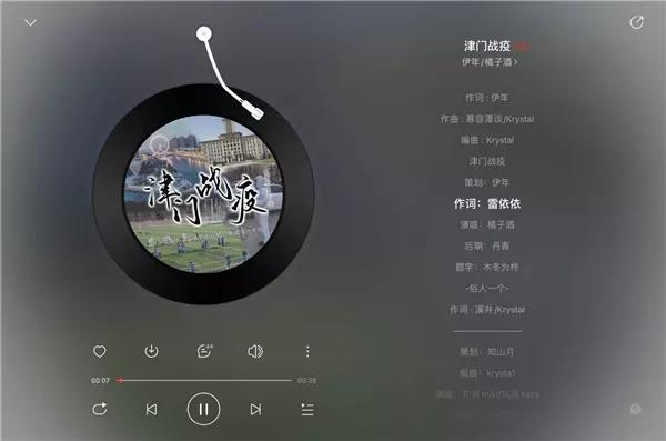 歌曲在音乐平台发布几天以来,就已超一千五的播放量,数据还在增长。对于《津门战疫》这首歌,雷依依起初认为和自己的其他作品一样倾向于“自娱自乐”,然而,听众的反响出乎她的意料。