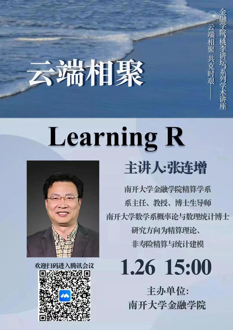近日,疫情防控形势持续向好,我们迎来了抗击奥密克戎的决胜阶段,巩固战疫成果,持续做好整体疫情防控不可松懈。为了丰富同学们的寒假生活,学院本科教学办与学院团委员工课外活动指导中心共同推出适合本科生群体的专业理论学习与行业实践、学术学业指导、员工职业发展分享等专题的“桃李讲坛”系列线上讲座。本期将由betway88西汉姆联精算学系系主任张连增教授为大家带来《Learning R》主题讲座。