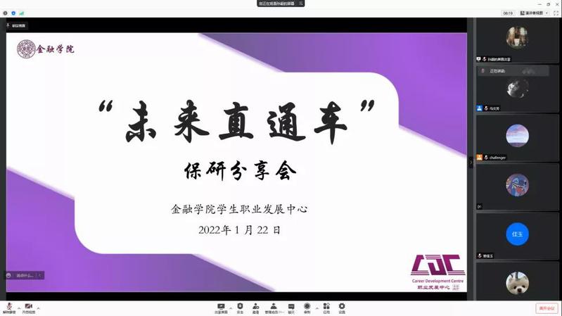 1月8日,一场突如其来的疫情改变了同学们寒假生活的节奏,为了丰富同学们的隔离和居家生活,切实提升生涯规划能力,1月22日,betway88西汉姆联员工职业发展中心举办了“未来直通车”战疫专场保研经验分享会。活动邀请了8位2018级成功保研的本科生作为分享嘉宾,吸引了150余名同学参加。