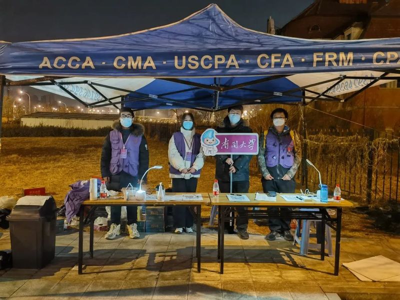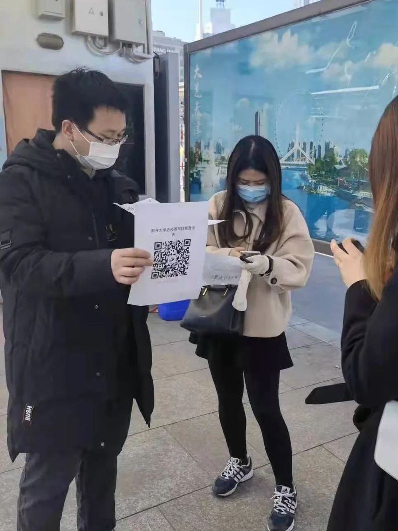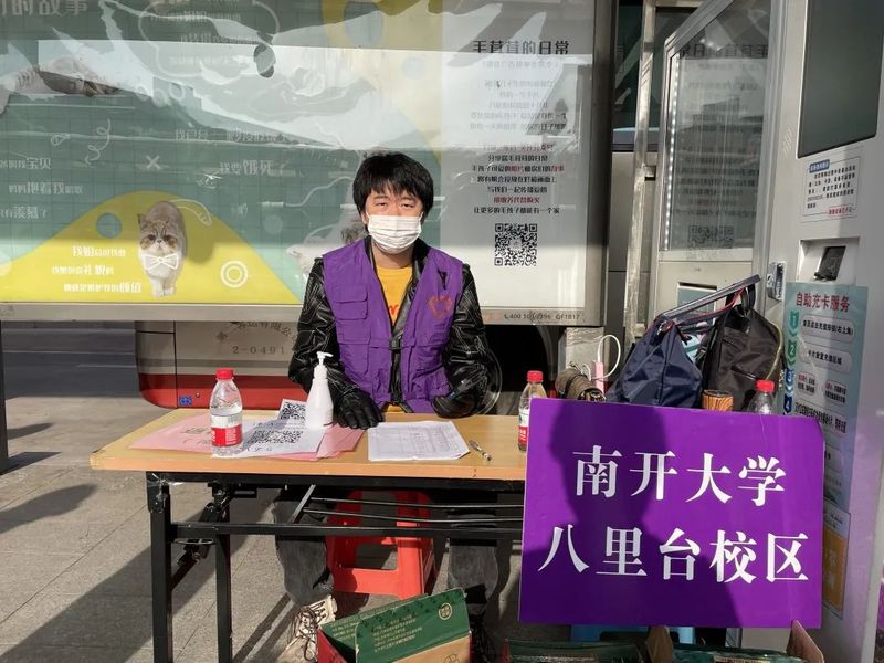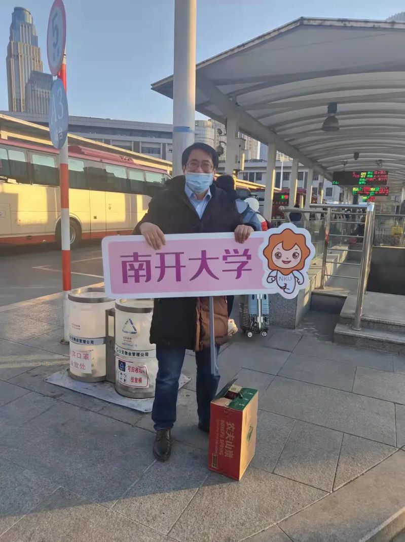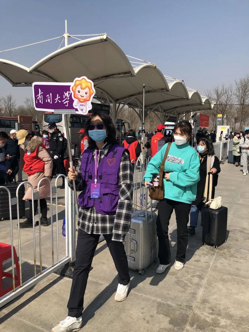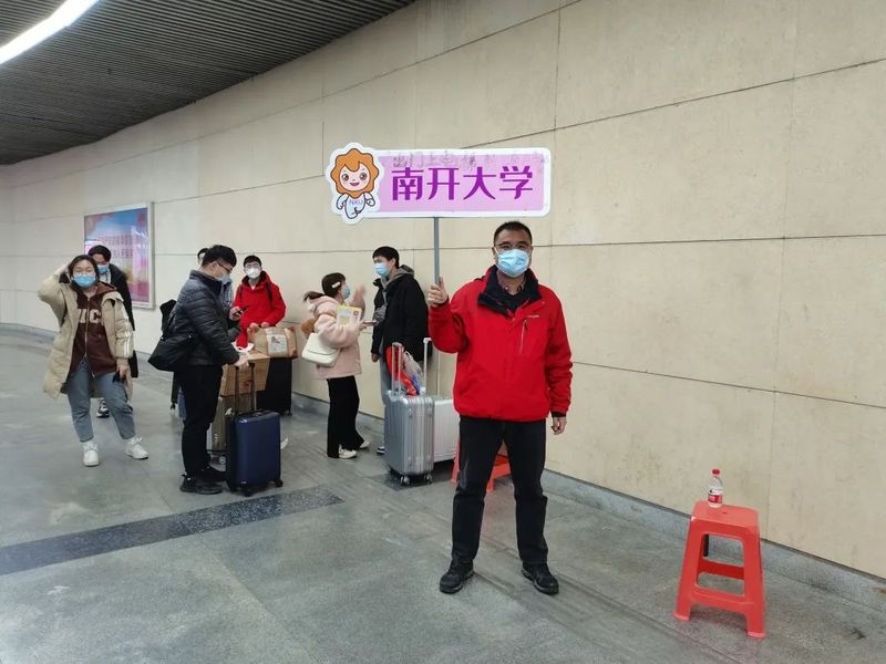郝人老师在天津西站接送凌晨返津员工,带领师生志愿者队伍引导返校秩序、查验返校资格