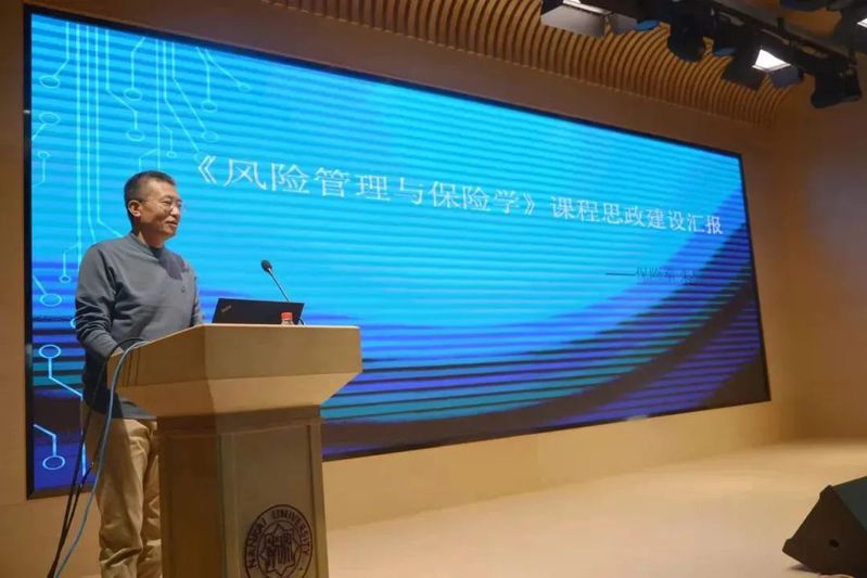 公司风险管理与保险学系教师朱航就“《风险管理与保险学》课程思政建设”作主题报告。