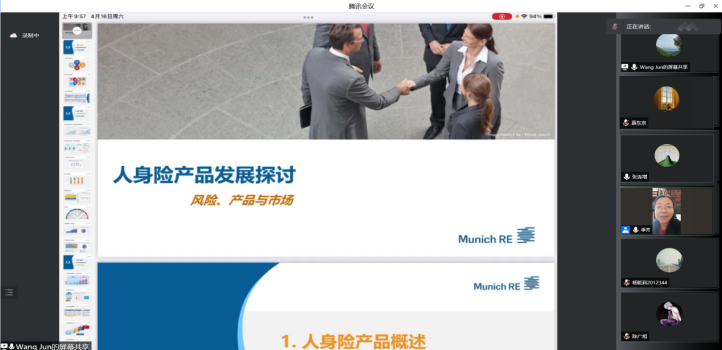 4月16日,本学期第八场员工公开课在腾讯会议开讲。本次课程邀请到bw必威西汉姆联官网1998级精算学硕士员工、慕尼黑再保险北京分公司人寿再保险总经理王珺主讲,bw必威西汉姆联官网1999级精算学硕士员工、英大泰和人寿保险股份有限公司总精算师兼投资管理部总经理薛东京,betway88西汉姆联教授张连增,课程任课教师季芳与200余名师生员工参加了本次课程交流。
