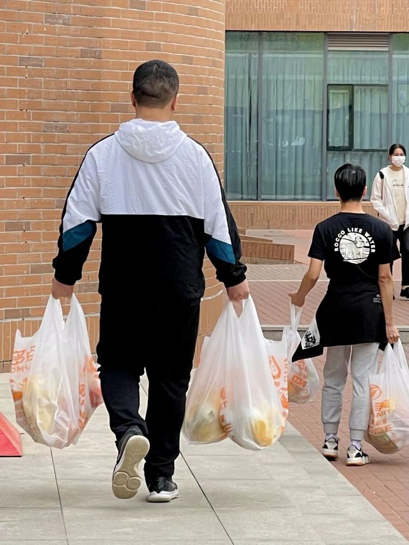 落日余晖,果香在学院楼前氤氲开来。经过志愿者们数小时的努力,苹果、香蕉、沃柑、香梨、柠檬、圣女果,六种水果从卸货到分发,1111份水果礼包被送到金融学子手中,为同学们献上甜蜜的问候。