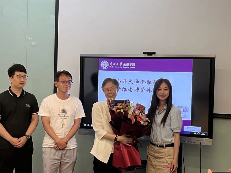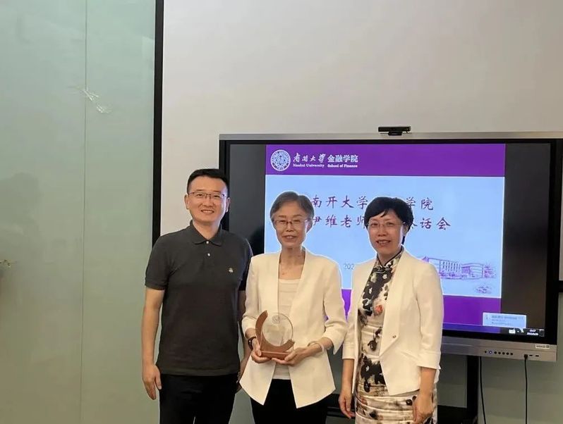 韩旭和范小云代表学院向陈伊维老师为南开金融保险学科发展和人才培养做出的贡献表示衷心的感谢,祝愿陈老师开启新的篇章,追求健康美好的退休生活,并诚挚邀请陈老师继续为青年教师成长、员工发展和团队建设发挥传帮带的重要作用。