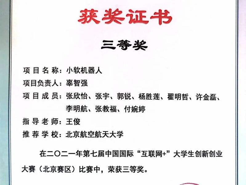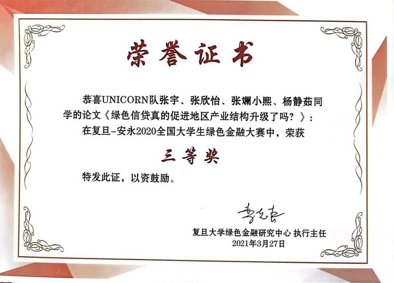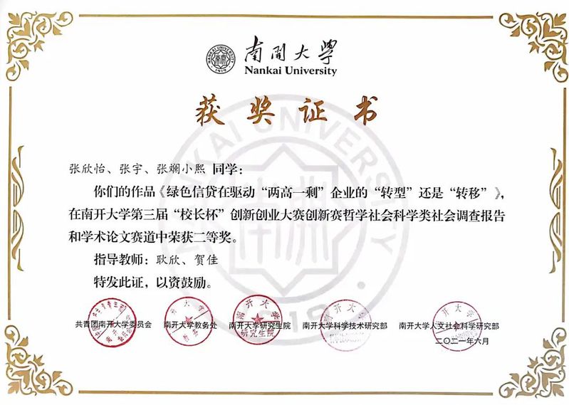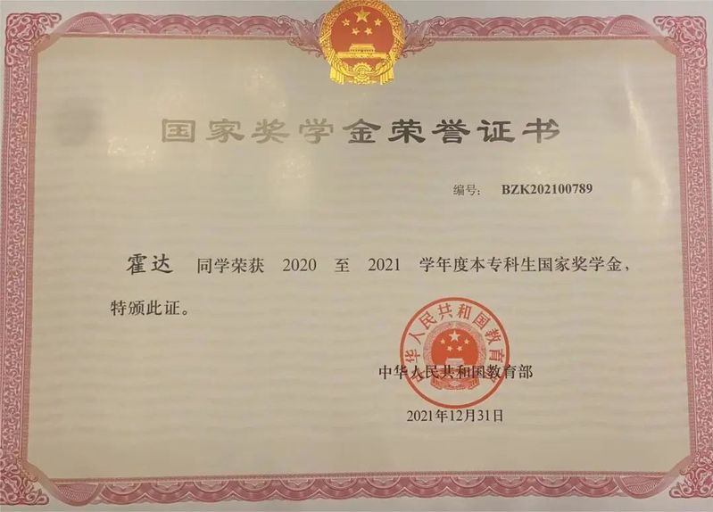 获奖证书:
