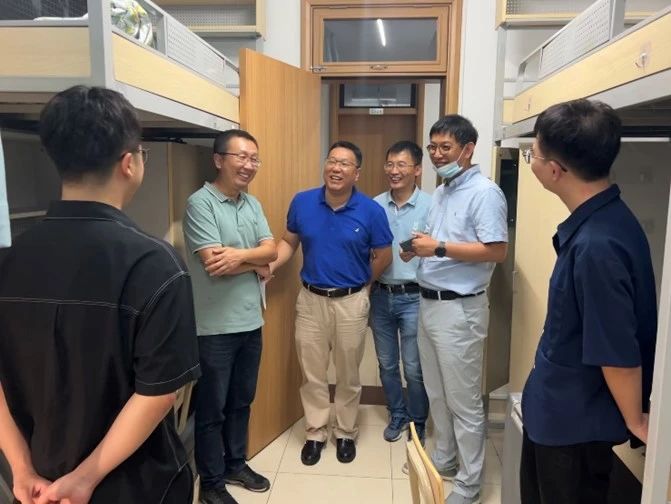 报到当天下午,学院领导、系所负责人、2023级本科生班导师以及辅导员逐一走访了新生宿舍,了解新生住宿情况,询问困难与需求,叮嘱同学们要尽快适应老员工活,做好相关准备。