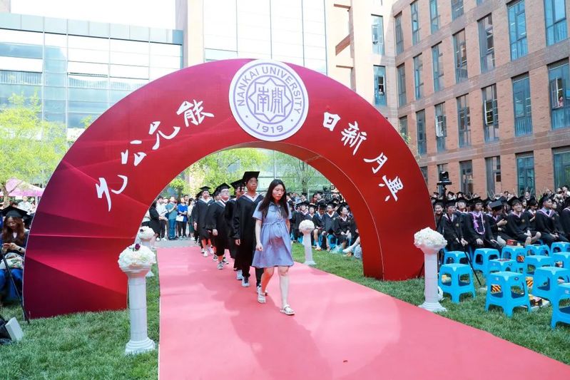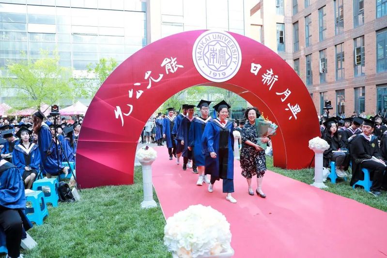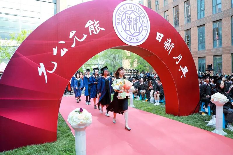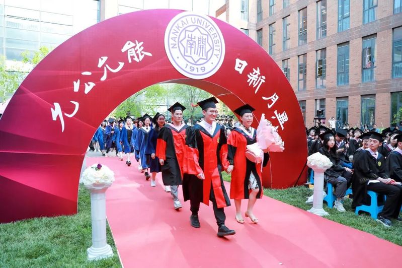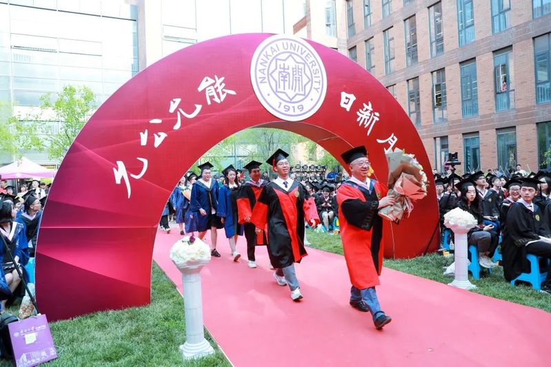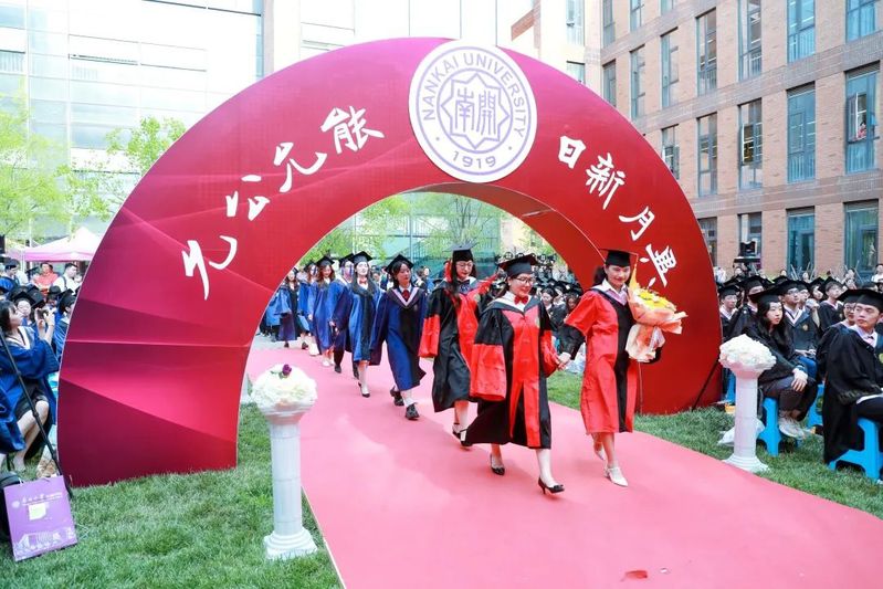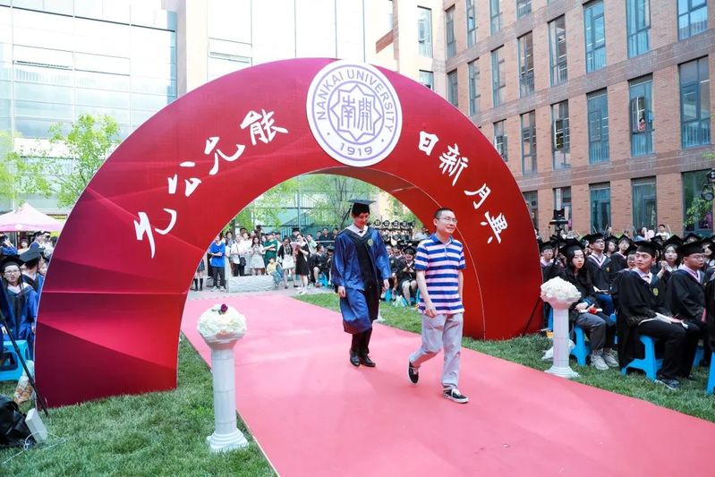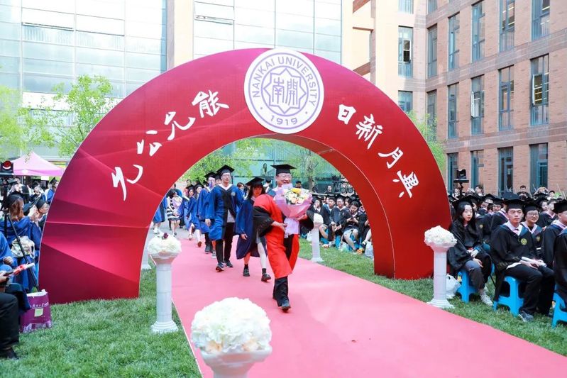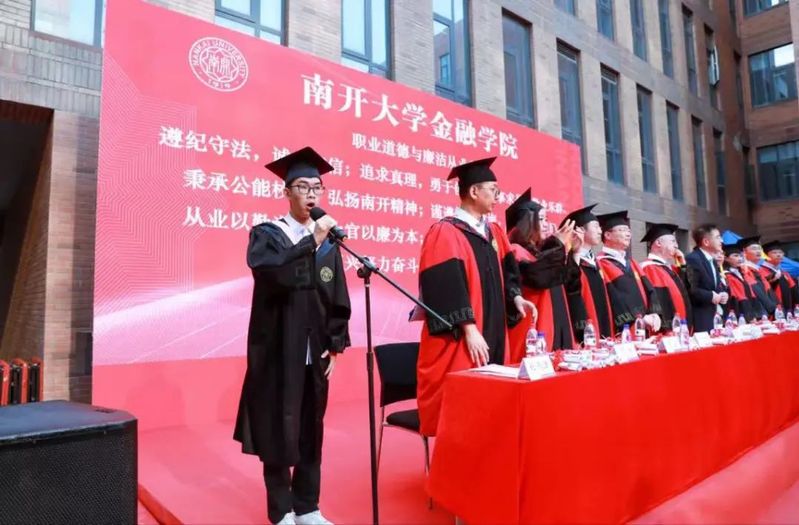 数载南开求索,一生金融征程,百年征途漫漫,砥砺青春向前。毕业生们在导师的引领下依次走上红毯、穿过毕业拱门、登上主席台接受拨穗礼。学院为每位毕业生准备了定制的专属水晶印章、毕业卷轴,为研究生毕业生制作了带有学院logo的丝巾领带,为本科毕业生制作了南开金融咖啡杯。