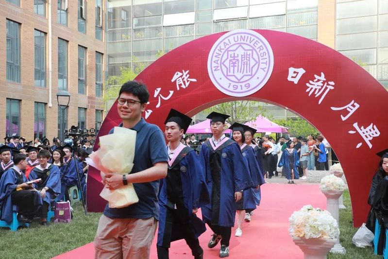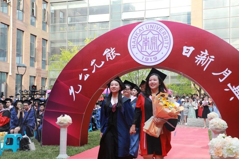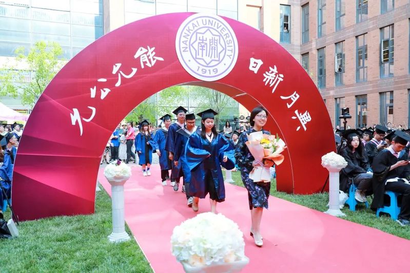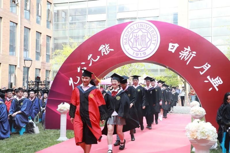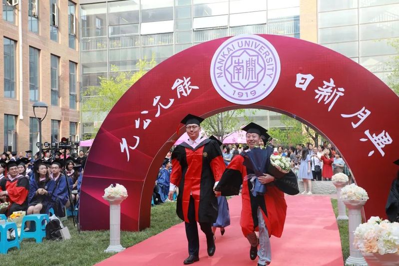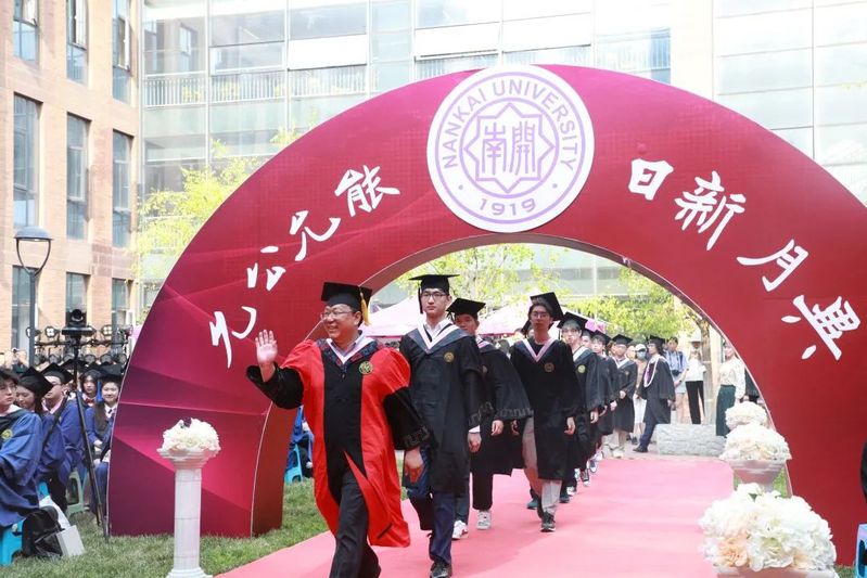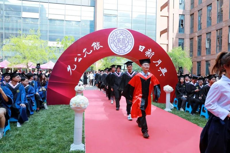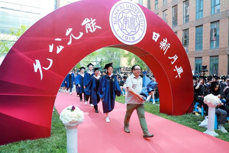 数载南开求索,一生金融征程,百年征途漫漫,砥砺青春向前。毕业生们在导师的引领下依次走上红毯、穿过毕业拱门、登上主席台接受拨穗礼。学院为每位毕业生准备了定制的专属水晶印章、毕业卷轴,为研究生毕业生制作了带有学院logo的丝巾领带,为本科毕业生制作了南开金融咖啡杯。