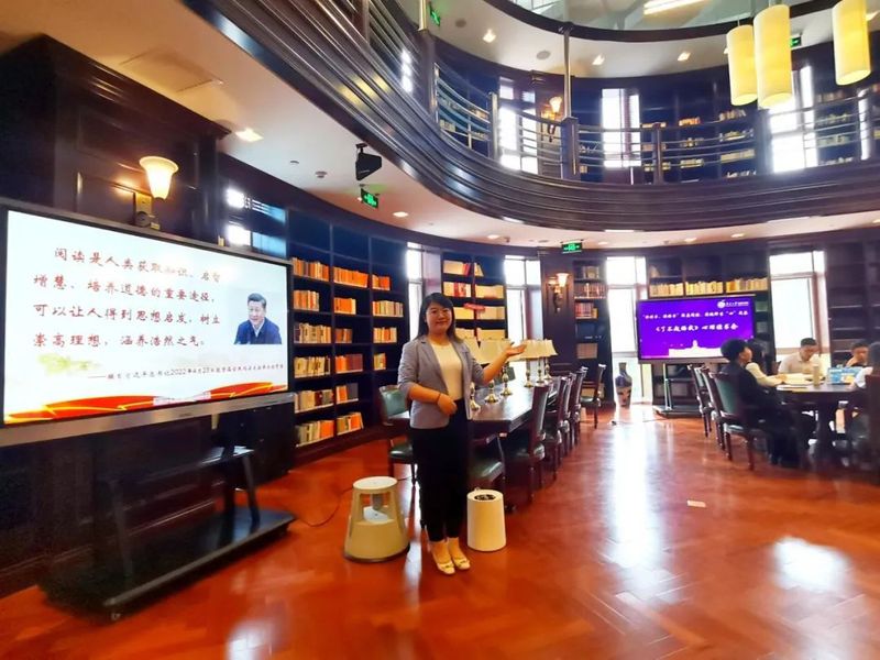 来到学院宁一弘道书斋,辅导员唐琳介绍了学院开设的“心理书籍”专柜与“书香金融”读书会活动。学经理期注重培养员工的阅读习惯,每周定期开展“书香金融”读书会。本学期聚焦心理健康主题书籍,提供近200本相关书目供员工借阅并引导大家记录所思所感。读书会的举办受到了师生们一致好评和广泛参与,逐渐成为学院心理育人的品牌项目。