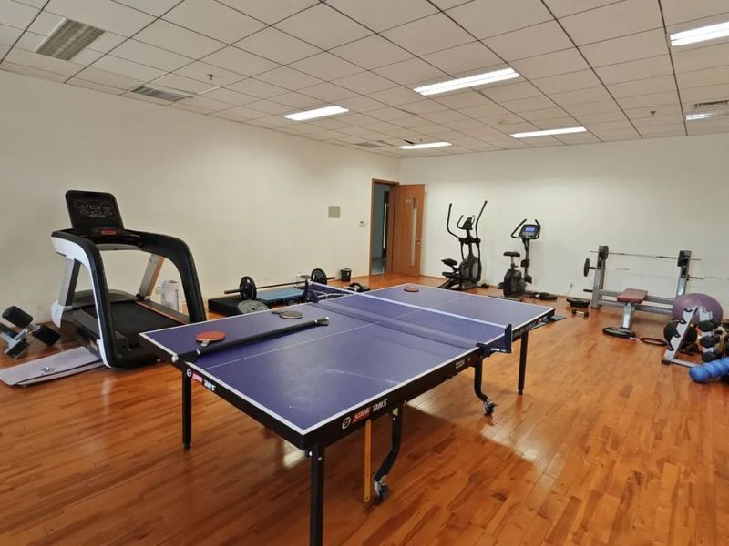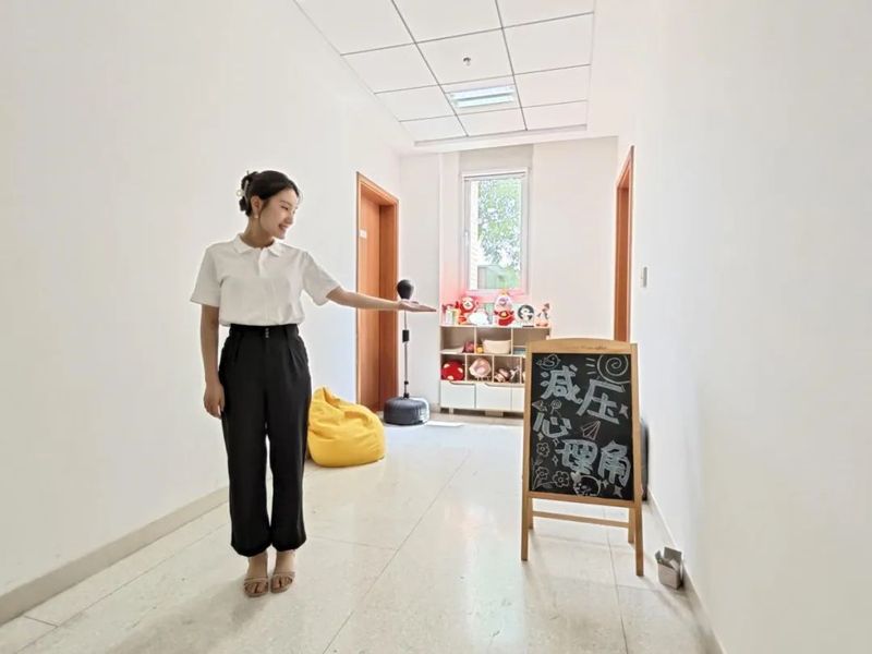 “此外,学院在一楼东南角开设了健身房,里面有跑步机、哑铃、杠铃、乒乓球桌等健身器材。”辅导员吕沛繁说,“公司还在楼内设立了三处减压心理角,提供各类解压玩具、放松沙发、立式沙袋、手工作品等,鼓励同学们通过器械锻炼和益智玩具放松身心。”