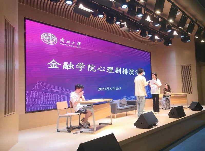 在学院201报告厅中,一场校园心理剧正在紧锣密鼓地排演。辅导员郝人介绍到,“心理剧”由员工自主编导演绎,采用同学们喜闻乐见的“演出+短视频”创作形式,剧情聚焦员工们在学习生活中遇到的烦恼和困惑。通过艺术表演等美育形式引起员工情感共鸣,起到减缓心理压力,释放内心矛盾冲突的作用。