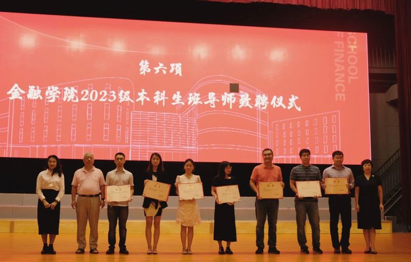 迎新大会上,还举行了班导师致聘仪式。田达、戴文廷、陈孝伟、王小倩、李力、杜霞、师与、张云齐八位老师受聘2023级本科生班导师,院领导共同为新聘班导师颁发聘书。