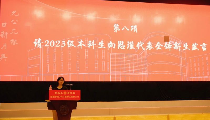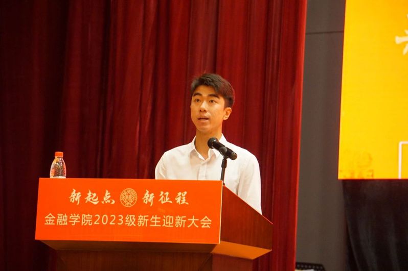 在校生代表2022级硕士研究生董世尧回顾了过往的求学经历,并向新生们分享了自己在南开金融就读的感受。他鼓励新生们善用学院资源,心怀好奇之心,不断实践尝试。董世尧勉励新生们保持初心,敢于担当,将南开敬业乐群的精神外化于行,把新时代南开金融人的第一粒扣子扣在爱中华、复兴中华的求学实践上。