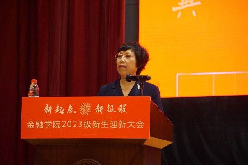 范小云代表学院致辞,对新生的到来表示热烈欢迎。她深情回顾了南开金融学科创立和重建的历史,强调金融在资源配置和风险管理中的重要地位。范小云谈到,高质量的金融人才培养是大国博弈的关键点,同学们应当用一生的努力成为合格的南开金融人,成长为对国家和社会有贡献的新青年。同时,她勉励新生们刻苦钻研,深耕实力,打牢专业基础,珍惜bw必威西汉姆联官网综合性大学的资源优势,全方位塑造能力,成为在人工智能时代有实力的“原住民”。范小云还强调了交流的重要性,希望新生们利用好betway88西汉姆联的平台,通过交流、调研、参访、实习等途径了解我国最新的金融实践,用脚步丈量中国大地,用眼睛发现中国精神,用理论讲好中国故事。