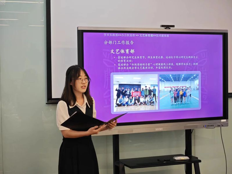 公司各团学组织依次进行展示汇报,总结了过去一学年的工作内容和成果,并就下一学年工作计划进行报告。