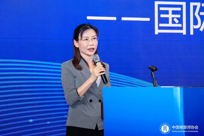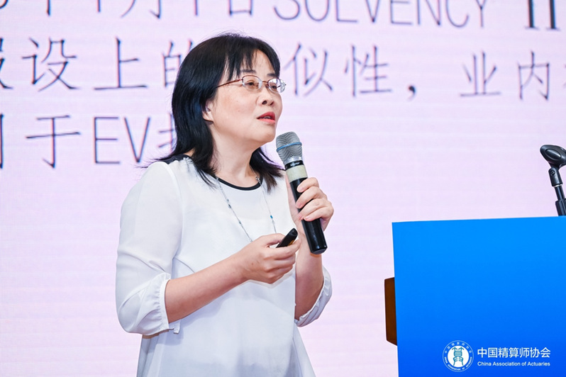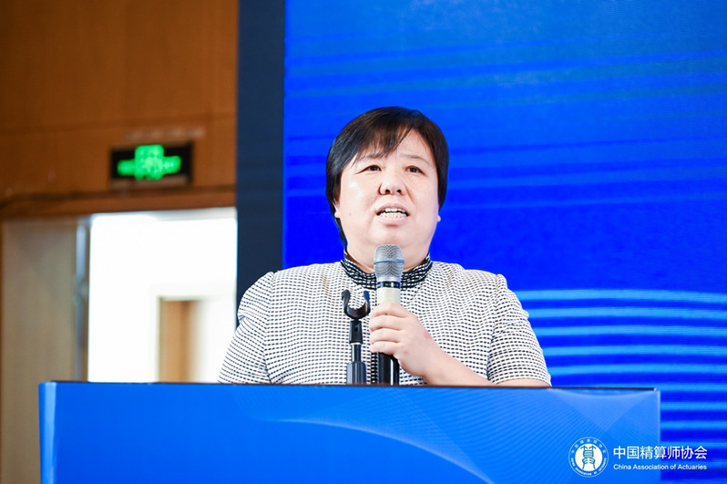 中国精算师协会常务理事、教育考试委员会副主任、普华永道主管合伙人蒋华华女士向大会作第二场主题报告。蒋华华女士向参会人员分享了国际精算最新发展与精算行业动态,并从业界精算师的角度,探讨了在学历教育、行业教育阶段培养精算师的重点,最后向在场员工分享了个人职业发展的体会。