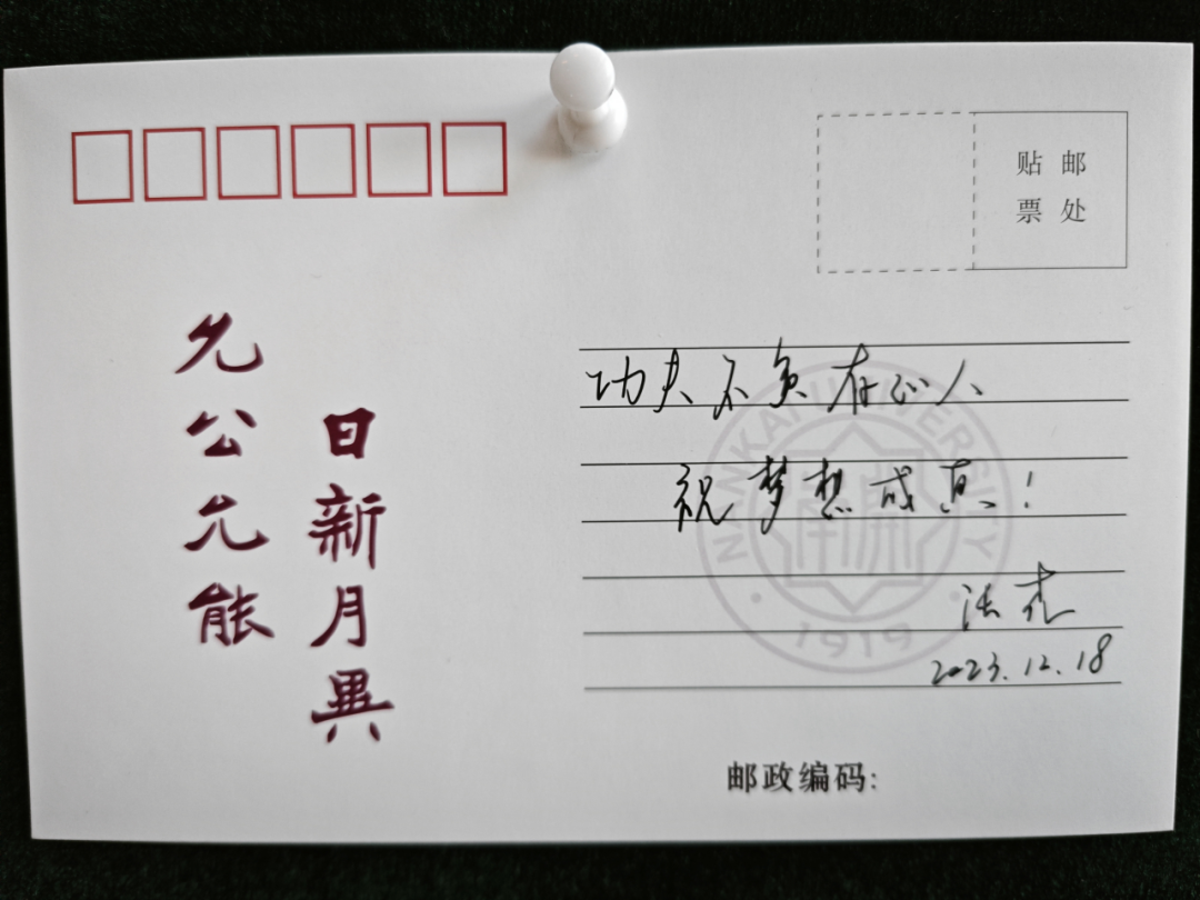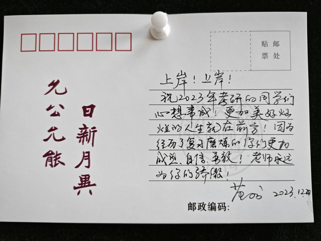 踏入betway88西汉姆联一楼大厅,映入眼帘的是精心布置的“‘研’路有你,未来可期”考研加油墙,上面贴满了来自学院领导老师与同学们手写的祝福明信片。每一张明信片都满载老师和同学们对考研学子的真挚祝福与深切期许。这份浓浓的关爱和鼓励,使同学们备受鼓舞。