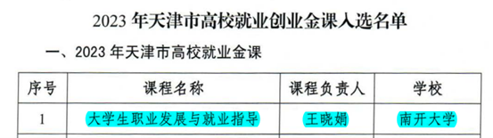 日前,天津市教育两委公布了2023年天津市高校就业创业金课入选名单。经专家组评审,分别认定就业金课、创业金课各5门。公司2门课程入围,入围课程总数在全市高校中名列前茅。其中,公司王晓娟老师主讲的《老员工职业发展与就业指导》获评2023年天津市高校就业金课。