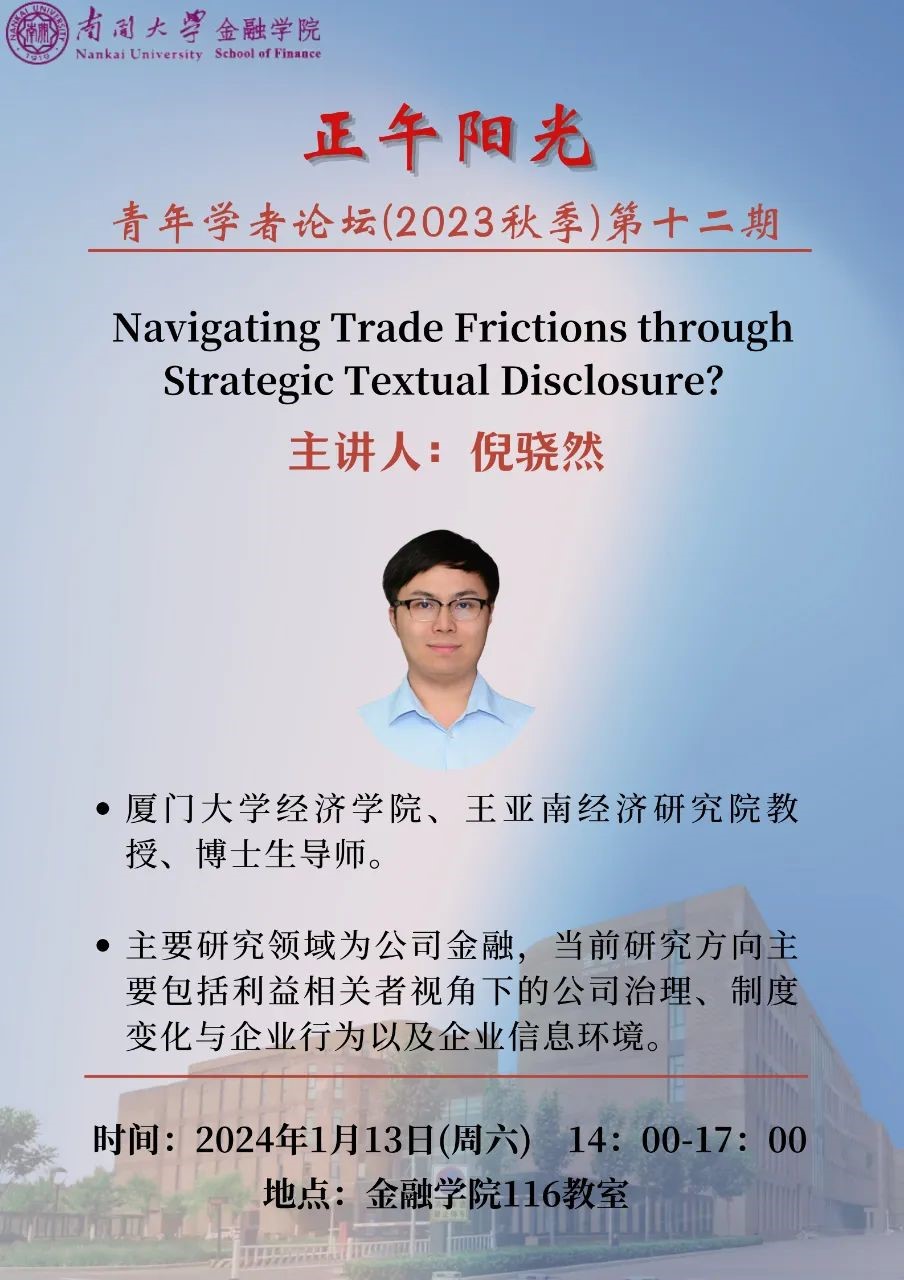 2023年秋季学期 “正午阳光——青年学者论坛”第12期活动安排如下: