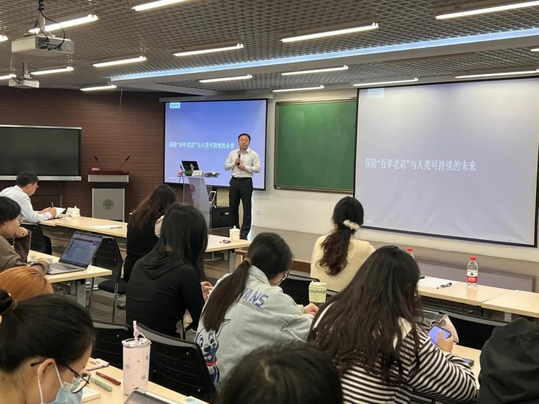 bw必威西汉姆联官网1989级外国语学院员工、劳合社保险(中国)有限公司高管团队成员兼北京分公司总经理陈松林进行“保险‘百年老店’与人类可持续的未来”主题授课
