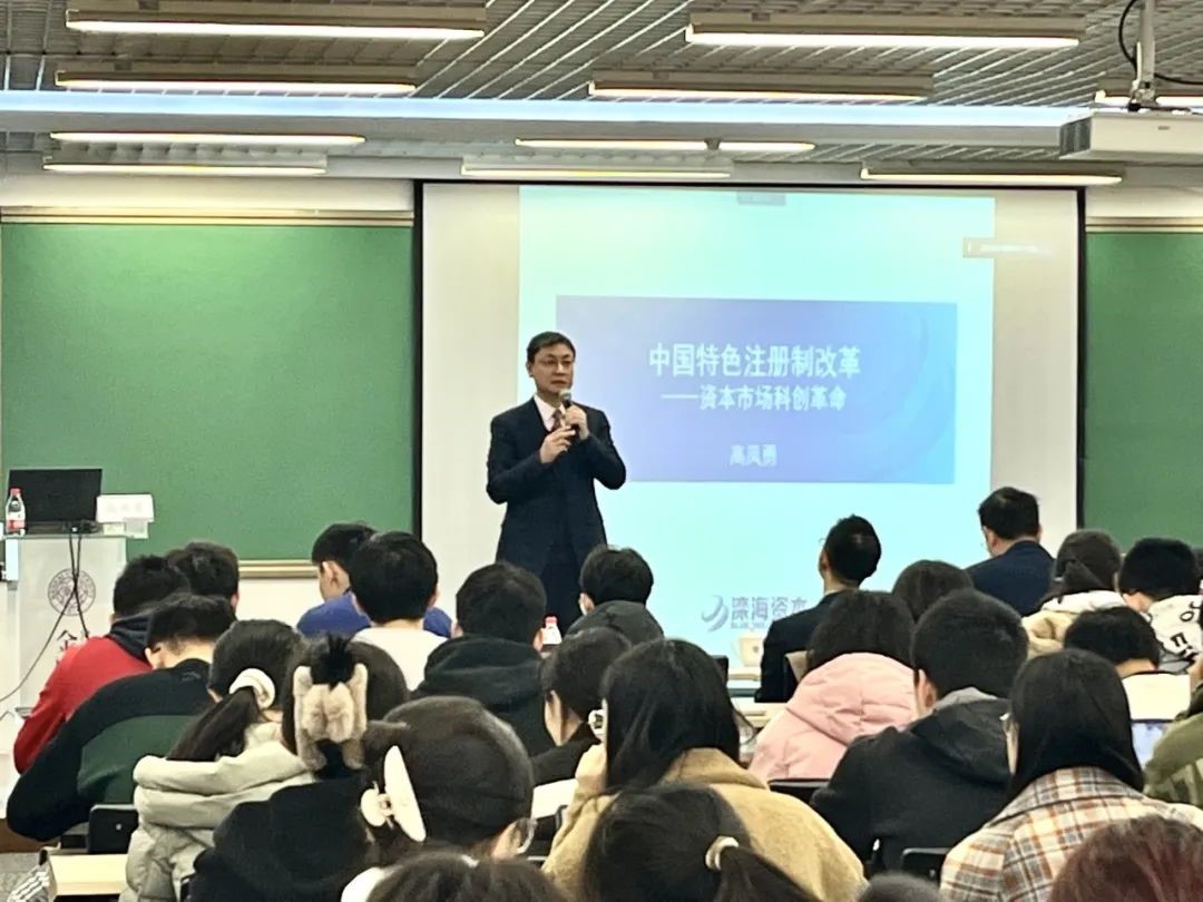 bw必威西汉姆联官网1988级金融系员工、力鼎资本创始合伙人兼CEO、滦海资本创始合伙人兼董事长高凤勇进行“中国特色注册制改革——资本市场科创革命”主题授课