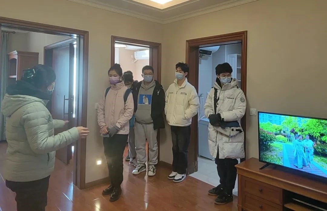 “这里的环境和配套设施真不错!”,“希望以后我能在这样的地方养老……”在此起彼伏的感叹声中,团支部同学在工作人员的指引下参观了康宁津园养老社区。从阅览室、乒乓室、健身房、幸福食堂等公共活动区域出发,途经老人打太极拳的下沉广场、举办晚会的亲水平台,再到老人拎包即可入住的标准间,同学们全面了解了康宁津园的养老体系与养老模式。“适老化是我们的最大特色,一间房里就有66项适老化设施”,工作人员详细介绍了前轮实木座椅、下拉式自动伸缩储物柜以及门边挂式医疗专用包等独特设计,每一项都体现了对老人细致入微的关怀。