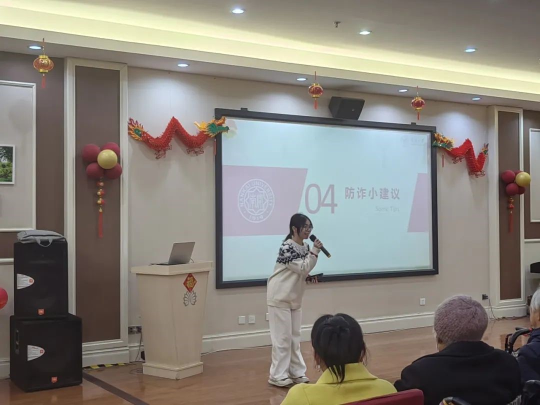 志愿者们为老人们精心准备了一场主题为“防范养老诈骗,了解养老金融”的科普讲座,详细列举了常见的金融诈骗类型,结合新闻报道中的真实案例,生动地展示了诈骗手段的多样性,详细解读了防范诈骗的“四不”“四要”原则,提醒老人们如何识别和避免诈骗行为。在养老金融知识宣讲环节,志愿者们深入浅出地介绍了养老金融的概念、内涵及其重要性,并重点讲解了储蓄、退休金、养老保险、国债、理财产品等常见的理财手段和相关金融知识,帮助老人更好地理解养老金融知识,掌握理财技巧。