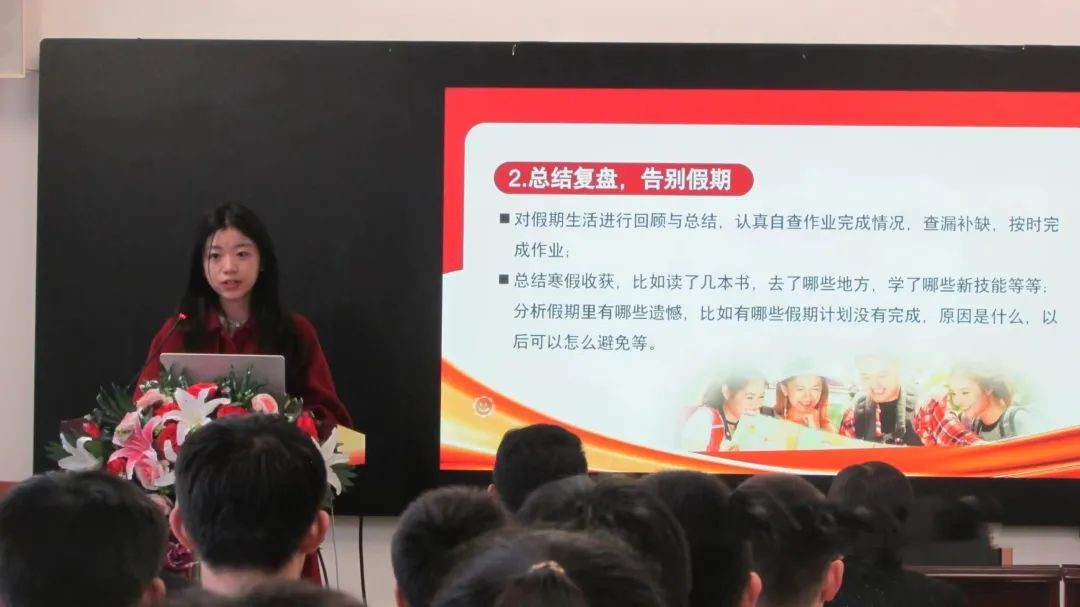 为深入推动大中小思政一体化建设,学院联合共建社区——津南区八里台镇碧桂园第一社区,走进天津市第一中学津南学校的课堂。志愿者们从春节热播的励志电影《热辣滚烫》切入,结合自己求学时的亲身经历,从制定学习目标、高效管理时间、合理分解任务等方面分享了如何在新学期制定合适的学习计划,从课前做好预习、勤于思考及时总结、有条不紊地完成学习进程等方面建议同学们养成良好的学习习惯。志愿者们的分享激励着同学们以不懈的努力战胜学习中的困难和挑战,以饱满的精神面貌在新的学期乘风破浪,朝着理想的目标矢志不渝。