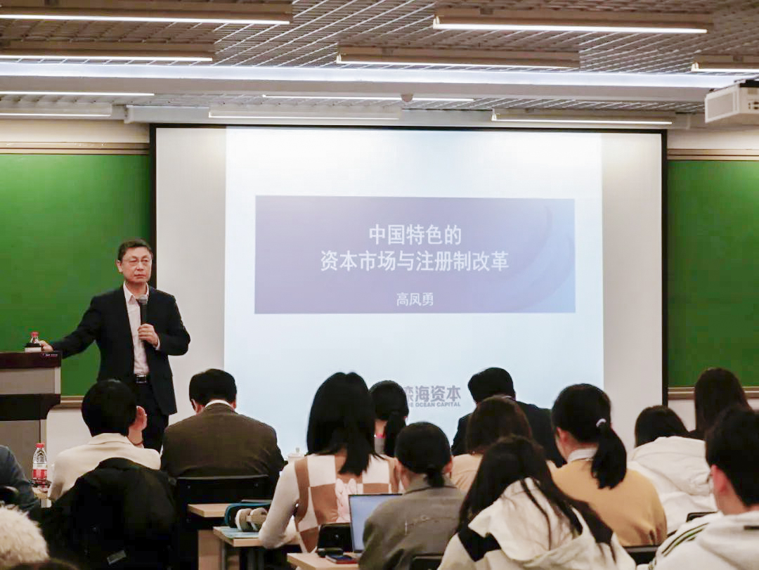 高凤勇以“中国特色的资本市场与注册制改革”为题,细致地分析了在近几十年间中国特色资本市场国家意志的演变,强调了在市场的现实与监管之间相机抉择的重要性。他还就进一步扩大上海等地区对外开放力度的政策——注册制的改革进行了详细解读,引导同学们更加关注市场、国家政策的实时变动,保持核心竞争力,做出更加理性的选择。