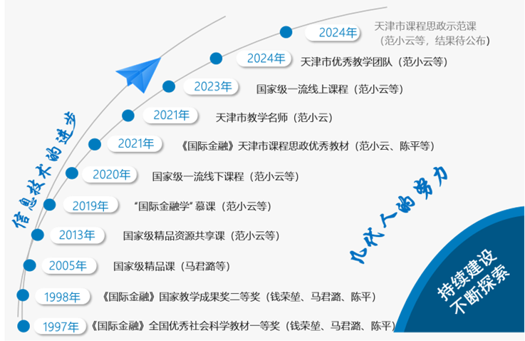 国际金融学教学团队薪火相传,汇聚优秀团队资源,不断追求卓越。国际金融学课程这门课也在持续不断努力探索下,陆续建设成为国家级精品课(2005年)、国家级精品资源共享课(2013年)、国家级一流线下课程(2020年)、国家级一流线上课程(2023年)等。
